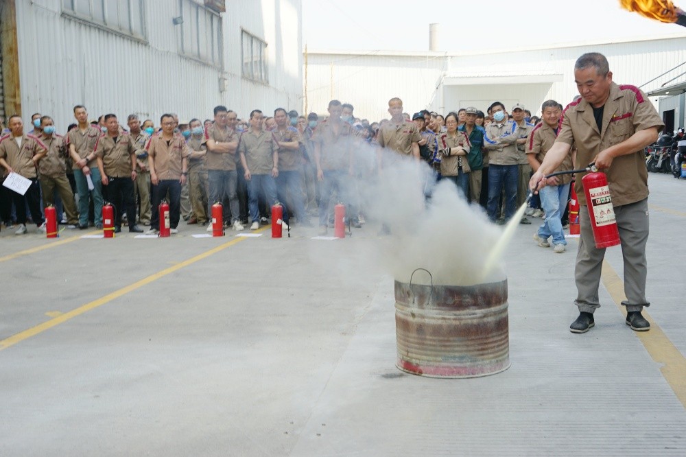首先由車間主任、班組長等進(jìn)行操作示范,隨后由新員工們輪流使用滅火器訓(xùn)練,對不當(dāng)操作進(jìn)行現(xiàn)場糾正,力求使公司每位員工都能熟練掌握滅火技能。