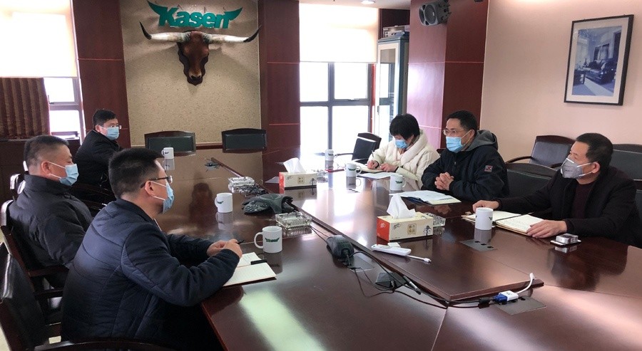 面對(duì)當(dāng)前疫情非常時(shí)期,2月10日下午,海寧市委書(shū)記朱建軍、市委辦主任陳中權(quán)等一行三人來(lái)到卡森集團(tuán)總部調(diào)研指導(dǎo)疫情防控工作及企業(yè)復(fù)工準(zhǔn)備情況。集團(tuán)副總裁張明發(fā)、周小紅、王柏良作了相關(guān)情況的匯報(bào)。