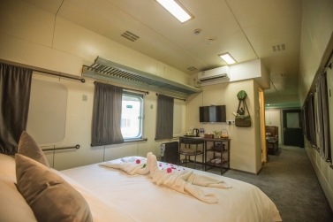 東方紅火車主題酒店由3列27節(jié)綠皮火車車廂組成,來自長春、沈陽等北方城市的綠皮火車經(jīng)過著名設(shè)計(jì)師的改造已經(jīng)成了國內(nèi)為數(shù)不多的火車主題酒店,一共73間火車客房和1個火車餐廳。酒店以橫鋼50年代金千鐵路舊址作為切入點(diǎn),利用火車枕木鋪設(shè)人行游步道,結(jié)合溫泉,形成了真正的VIP溫泉客房。走進(jìn)綠皮火車,你會發(fā)現(xiàn)原先的車廂已經(jīng)被很好地設(shè)計(jì)成了宜居的客房,書桌、衛(wèi)生間、電視、暖氣一應(yīng)俱全,還能在墻上看到年代感的背包/水壺/帽子的裝飾。