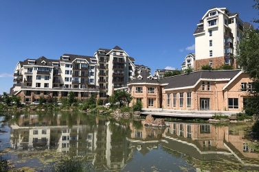 項目以北歐風情小鎮(zhèn)為藍本,吸收阿爾卑斯山地區(qū)冰雪文化的精髓,并結合長白山地域文化精粹,開發(fā)建設有“長白天地度假酒店”和“冰雪小鎮(zhèn)”花園住宅、會議中心、商業(yè)廣場和商貿步行街等綜合旅游設施,以滿足高品位人士居住、度假、商務、娛樂、購物的多重需求,是東北亞地區(qū)一個可居、可賞、可游的冰雪旅居綜合體。其中,“長白天地度假酒店”建筑面積約8萬平米,酒店已于2014年8月營業(yè);“冰雪小鎮(zhèn)”花園住宅建筑面積7.8萬平米,于2016年10月竣工交付。