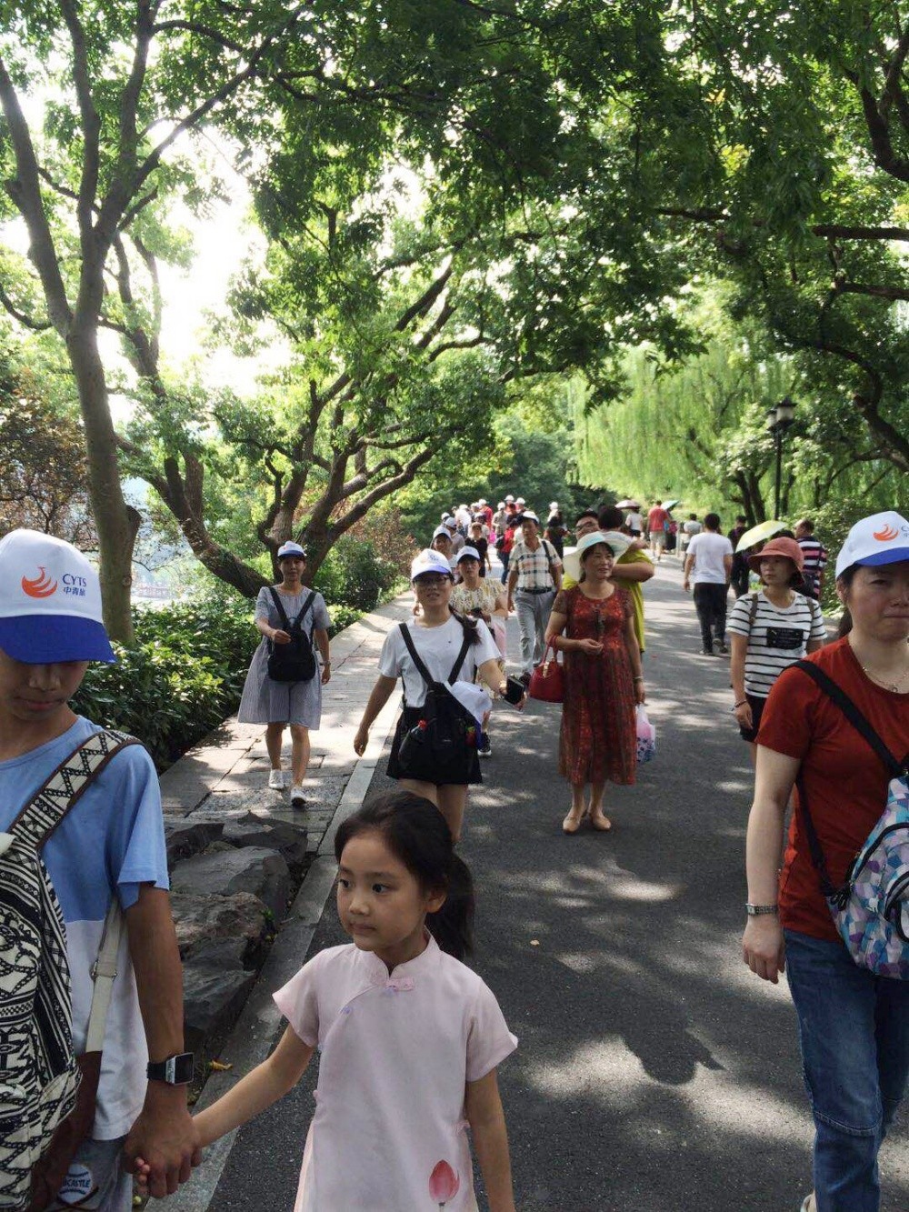 一下車,大家漫步來(lái)到了西湖邊,走在蘇堤上,紛紛感慨:西湖不愧是人間天堂??!整個(gè)一座湖就像一面大鏡子,倒映著湖邊的美景,照出了大家歡樂(lè)的心聲。湖堤兩岸長(zhǎng)滿了柳樹(shù),柳樹(shù)依舊像春天那樣充滿著蓬勃的生命力,枝條長(zhǎng)得已經(jīng)垂到了湖面,宛如一個(gè)美麗的少女正在清洗她那長(zhǎng)長(zhǎng)的黑發(fā),微風(fēng)乍起,柳枝擺動(dòng),仿佛是風(fēng)在彈奏悠揚(yáng)的豎琴,也仿佛在歡迎我們恒森一家人的到來(lái)。在這如此美的景色下,有的員工拿出手機(jī)拍照留念,有的員工結(jié)伴倚在湖邊的長(zhǎng)凳上,相互聊天拉家常。