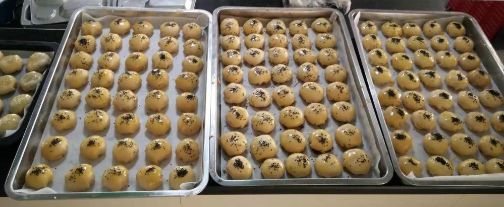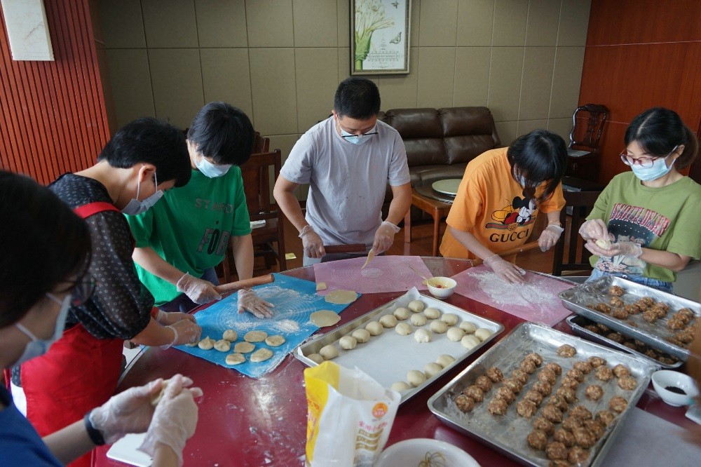 在群團組織的帶領下,大伙兒一起親身體驗做月餅的樂趣,現(xiàn)場熱鬧非凡,氣氛活躍喜慶。公司不乏做月餅高手,在她們點撥下,大家信手拈來,人人化身月餅師傅,揉粉、搟皮、做餡、包裹、上色、烘焙……一個個精美的月餅在手中呈現(xiàn),空氣中洋溢著滿滿的成就感。