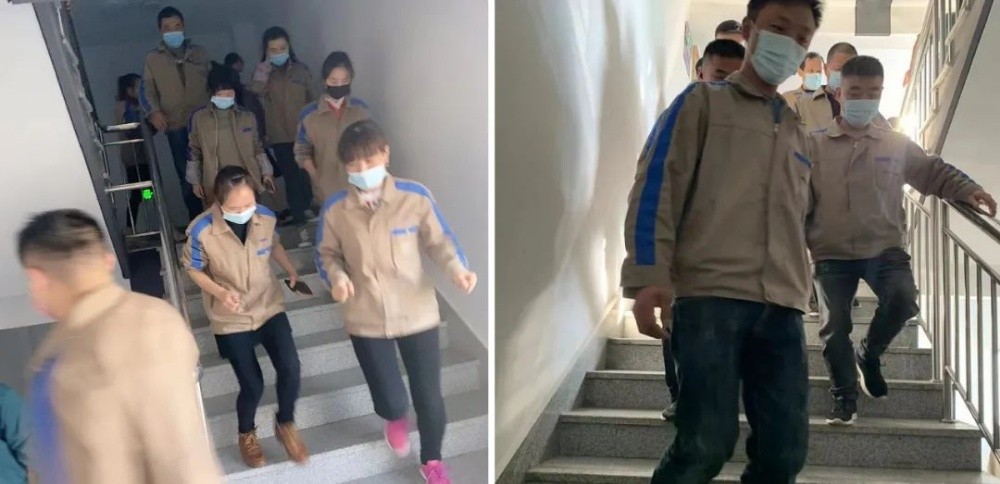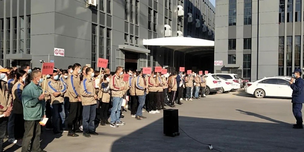 隨著警報響起,應急疏散演練正式開始,班組長在各車間門口引導員工迅速離開車間,員工用濕毛巾之類物品捂住口鼻彎腰低姿快速有序地沿防火安全疏散通道向外跑,各部門負責人將員工引導至空曠安全地帶“緊急集合點”,隨即各車間主任清點人數(shù),并層層向上匯報。