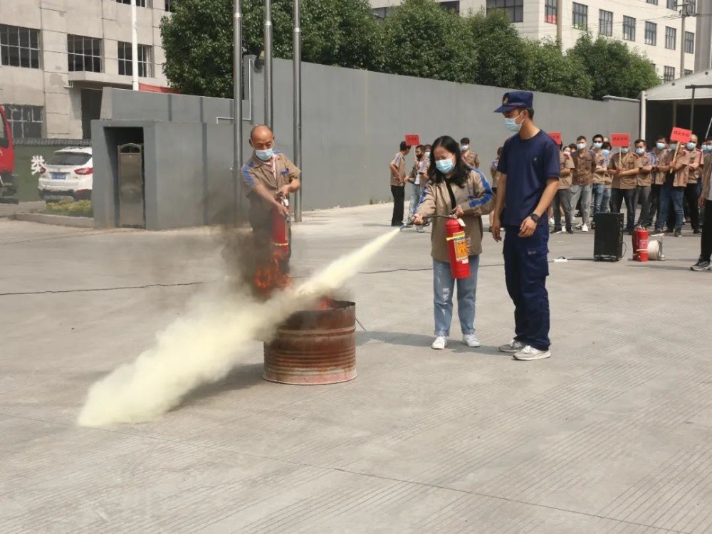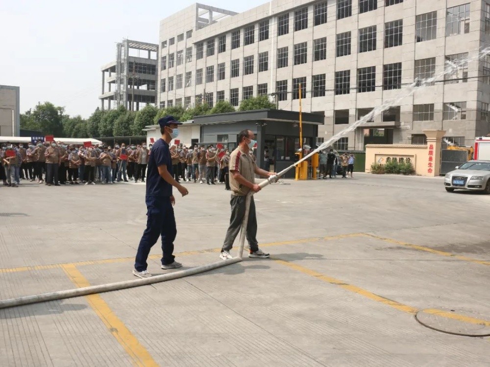 最后,組織各個(gè)部門員工代表用干粉滅火器進(jìn)行滅火演練,及水帶連接消火栓出水演練,使員工進(jìn)一步正確掌握滅火要領(lǐng),快速撲滅著火物。