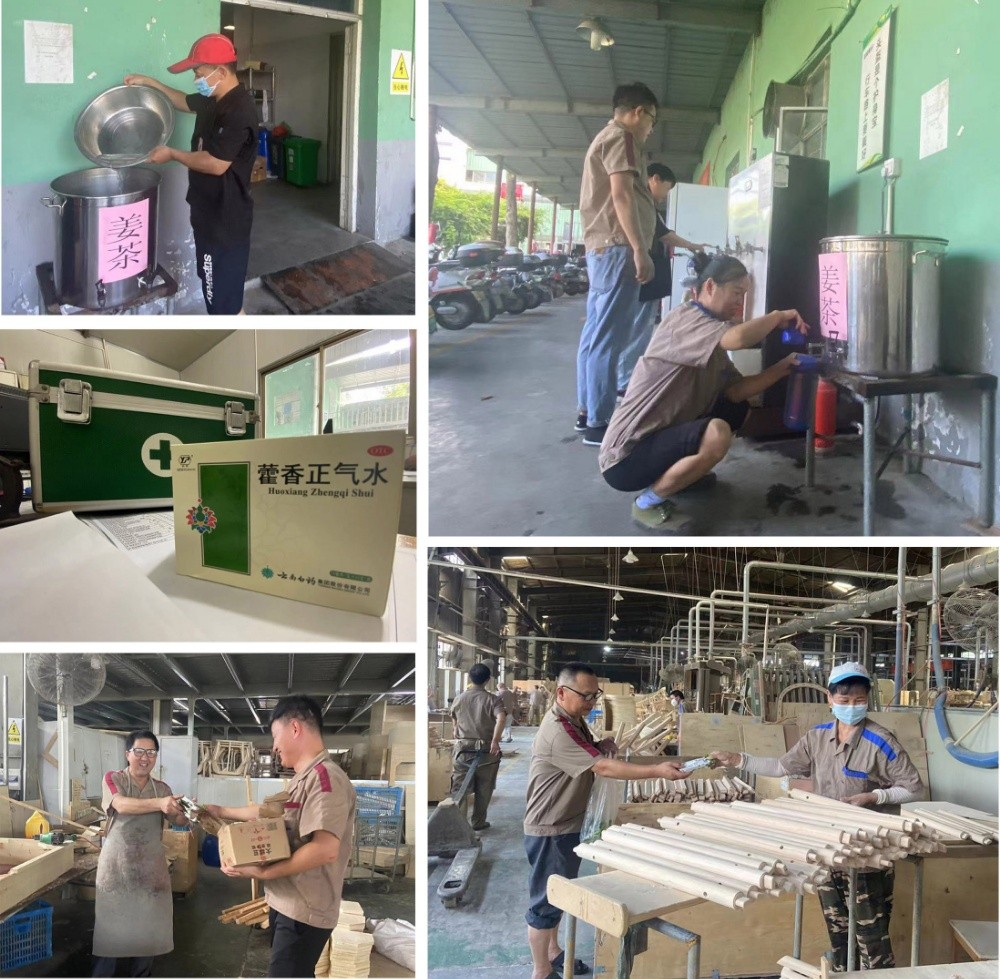 公司在每個車間辦公室配備防暑藥品,食堂工作人員準(zhǔn)備了姜茶,并且還在下午適時發(fā)放棒冰。