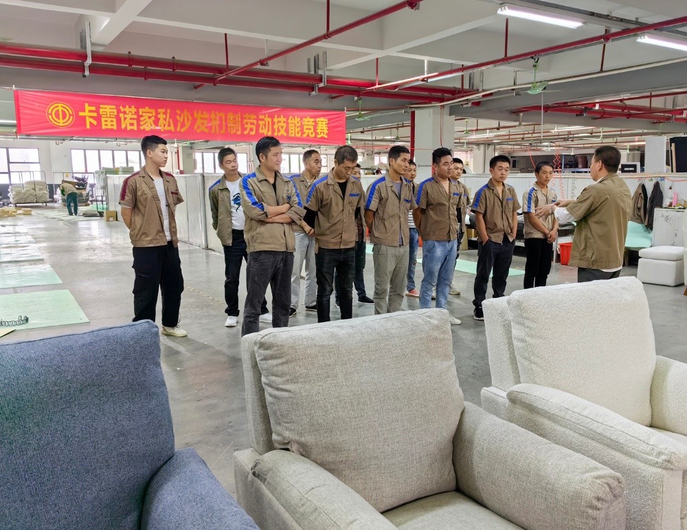 為貫徹黨的二十大精神,在全社會弘揚勞動精神、奮斗精神、創(chuàng)造精神,進一步提高員工勞動技能,激發(fā)員工愛崗敬業(yè)熱情,10月28日下午,海寧卡雷諾家私有限公司組織開展了沙發(fā)捫制勞動技能競賽。