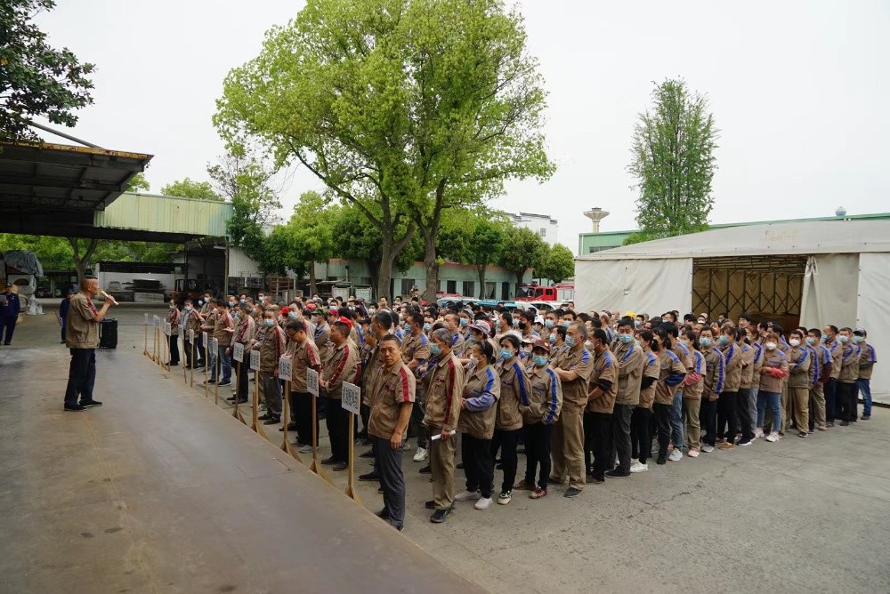下午2點半,廠區(qū)內(nèi)警報聲響起,員工們有序、從容地從各個崗位上“逃離”,火速趕到“安全區(qū)”集合,參加全企消防理論培訓與實操訓練。