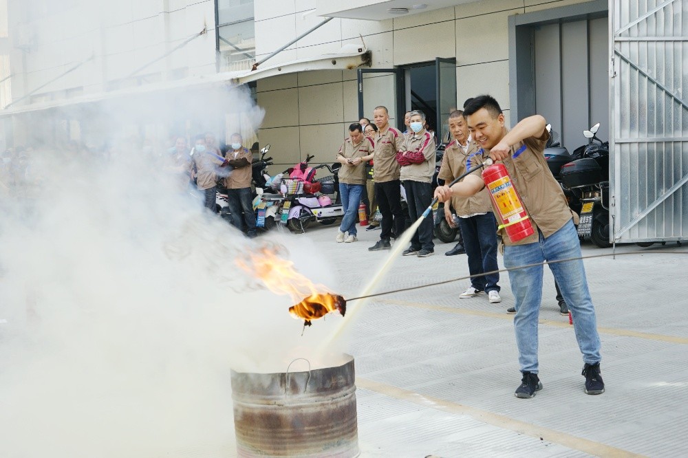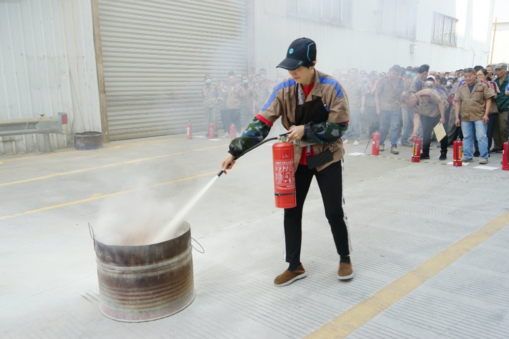 首先由車間主任、班組長等進(jìn)行操作示范,隨后由新員工們輪流使用滅火器訓(xùn)練,對不當(dāng)操作進(jìn)行現(xiàn)場糾正,力求使公司每位員工都能熟練掌握滅火技能。