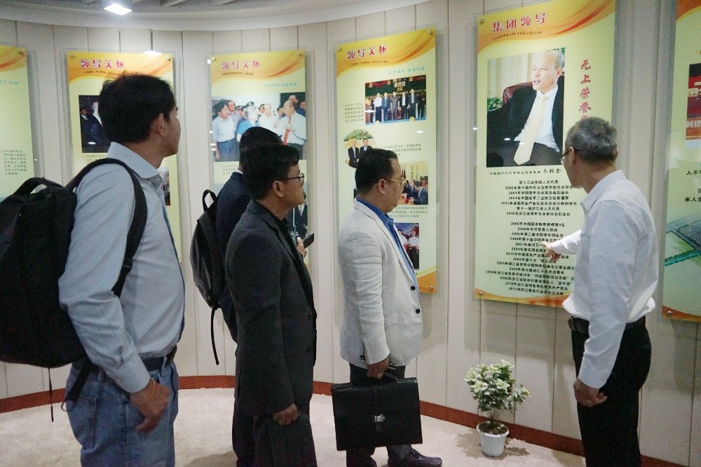 訪(fǎng)問(wèn)團(tuán)一行首先來(lái)到卡森大廈,參觀(guān)集團(tuán)總部的展示廳,聽(tīng)取朱書(shū)記對(duì)整個(gè)集團(tuán)發(fā)展的介紹。詳實(shí)的圖文資料、龐大的卡森產(chǎn)業(yè)和一步一個(gè)腳印的集團(tuán)建設(shè)歷程令訪(fǎng)問(wèn)者驚嘆不已。