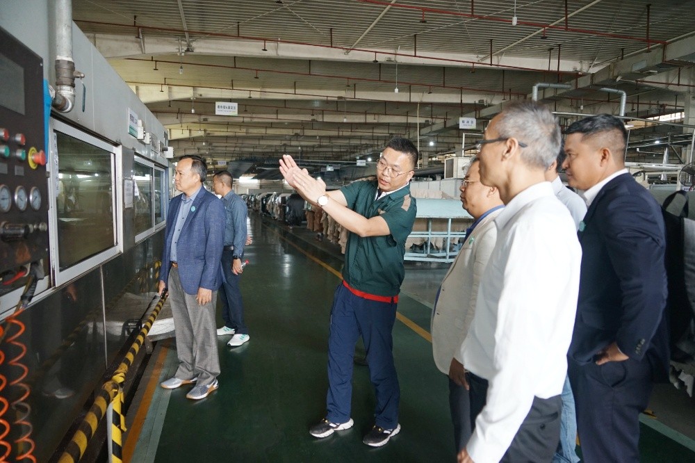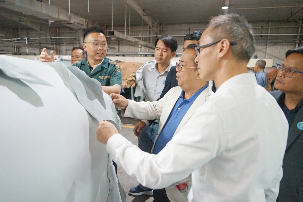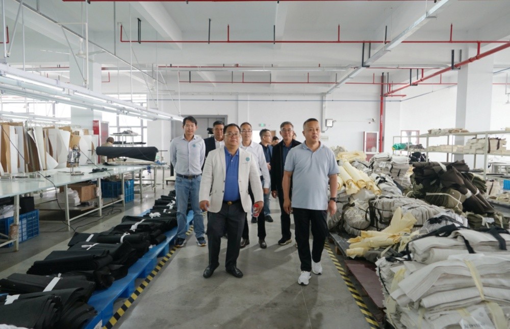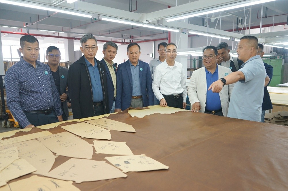 隨后,訪(fǎng)問(wèn)團(tuán)一行到斜橋工廠(chǎng)區(qū)進(jìn)行參觀(guān)訪(fǎng)問(wèn)。在漢林沙發(fā)有限公司,總經(jīng)理朱建林帶大家參觀(guān)了沙發(fā)制造車(chē)間和成品車(chē)間;在制革事業(yè)部,副總經(jīng)理謝柏?zé)槑ьI(lǐng)大家參觀(guān)了皮革制造車(chē)間。