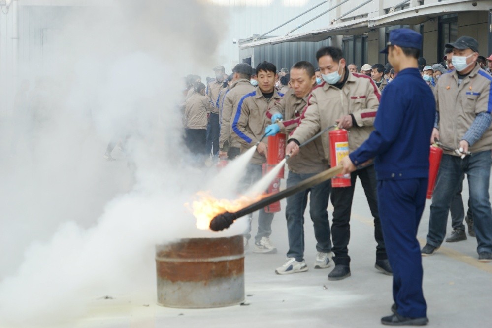 員工代表進(jìn)行滅員工代表進(jìn)行滅火器使用實(shí)操,尤其是對(duì)新近入職員工,要求每人必須當(dāng)場(chǎng)操作,確保人人會(huì)用滅火器。