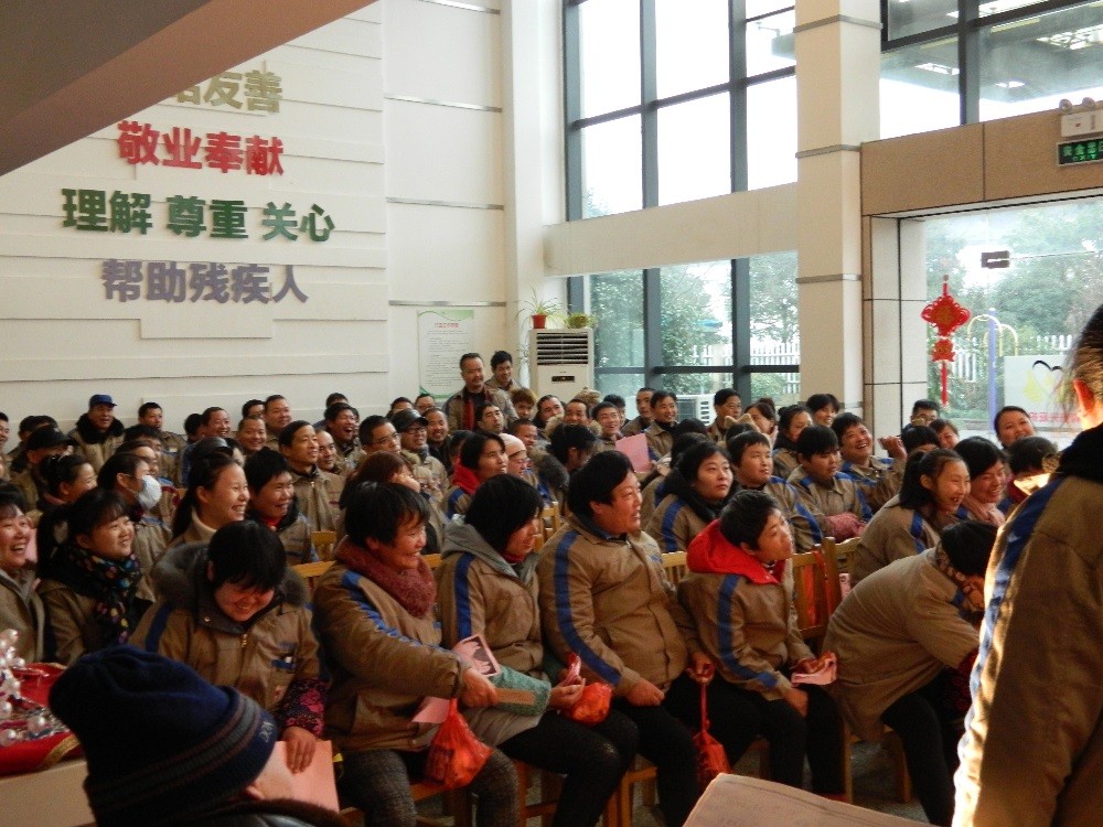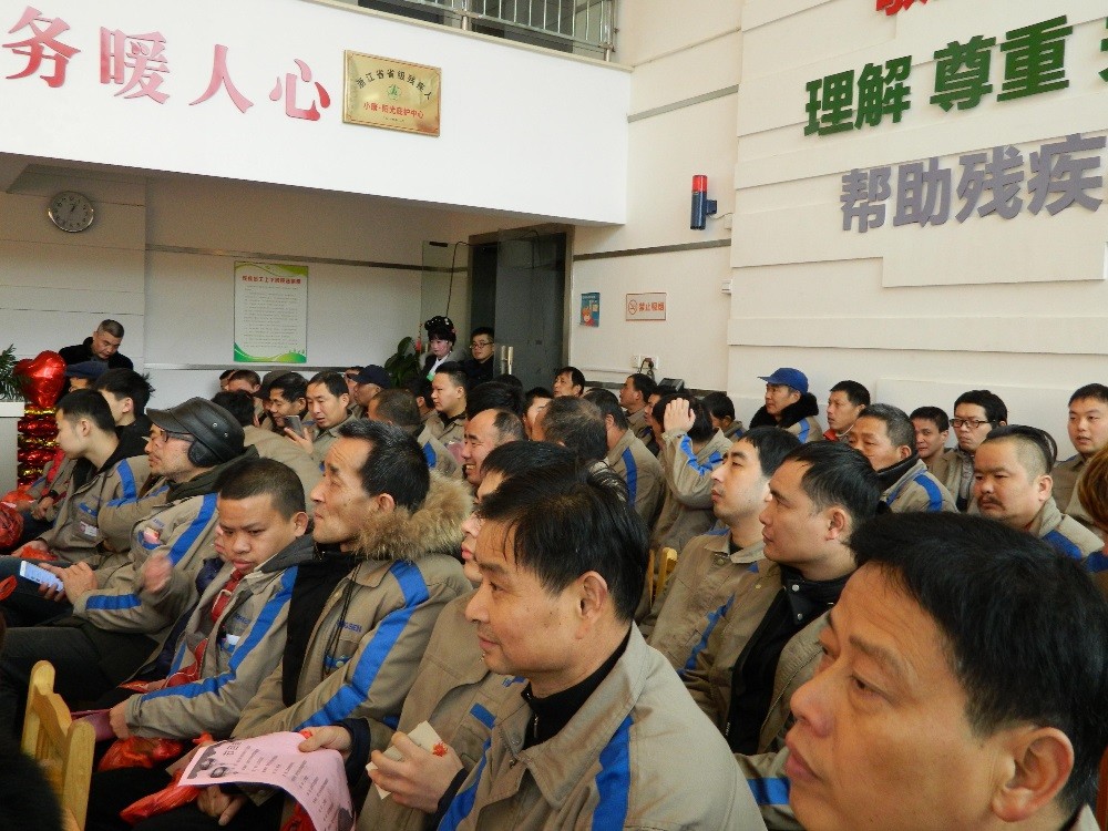 在海寧樂(lè)融社工組織的幫助下,2019年1月9日,恒森陽(yáng)光小康庇護(hù)中心舉辦了迎新春年會(huì),邀請(qǐng)長(zhǎng)安虹橋越劇團(tuán)來(lái)中心為廣大殘疾職工義演越劇名段,中間穿插游戲互動(dòng)和興趣抽獎(jiǎng)。