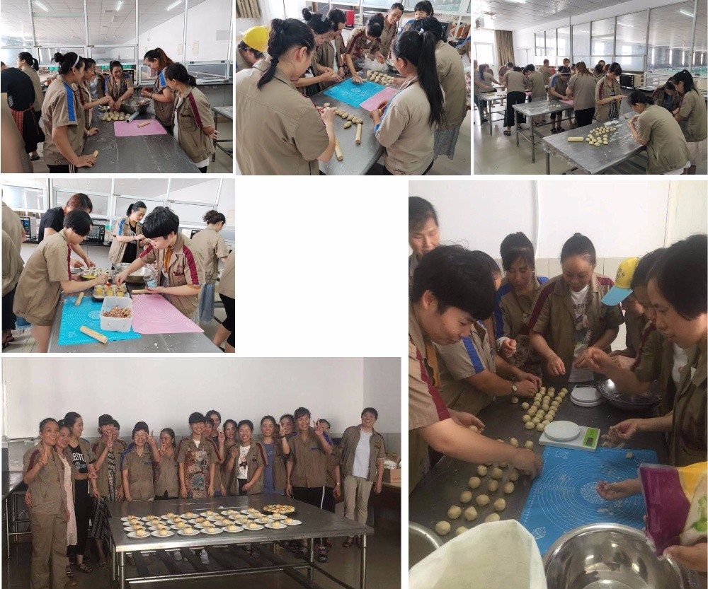 下午12點(diǎn),大家熱情積極地聚集在公司食堂。首先行政管理部經(jīng)理介紹了中秋傳統(tǒng)節(jié)日的起源和風(fēng)俗習(xí)慣。接著在烘焙愛好者的現(xiàn)場講解指導(dǎo)幫助下,大家擼起袖子加油干了,互相探討著做法,有的和面,有的調(diào)制餡料,有的搟面皮,有的包月餅……大家精心制作著,忙得不亦樂乎。做好的月餅排列在烤盤上,就像一個個等待檢驗的士兵,接受過“烤”驗后,一盤盤月餅端出烤箱時,那濃郁的香味立即飄散開來。不得不說,令人饞涎。大家紛紛圍坐一起,品嘗著自己制作的月餅,享受著親自動手的快樂。同時,恒森志愿者們給黃灣養(yǎng)老院送去中秋祝福及慰問品,陪老人們提前過了中秋節(jié),香香的月餅包裹著濃濃的情誼,老人們心里樂滋滋的。