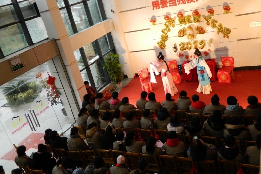 在海寧樂融社工組織的幫助下,2019年1月9日,恒森陽光小康庇護(hù)中心舉辦了迎新春年會(huì),邀請(qǐng)長(zhǎng)安虹橋越劇團(tuán)來中心為廣大殘疾職工義演越劇名段,中間穿插游戲互動(dòng)和興趣抽獎(jiǎng)。2個(gè)多小時(shí)的節(jié)目表演精彩紛層,職工們聚精會(huì)神享受文化大...