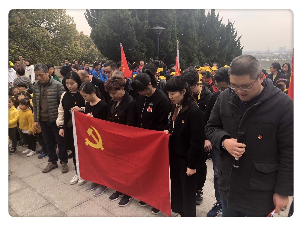 接著,黨員們拾級而上,一氣呵成來到了高高在上的紀念碑前,看到碑上刻著八個大字:革命烈士永垂不朽。全體黨員在烈士紀念碑前默哀1分鐘, 由李江東帶領(lǐng)全體人員面對黨旗鄭重重溫了入黨誓詞,一字一句鏗鏘有力,充分表達了黨員們團結(jié)一致,恪守黨員承諾、彰顯爭創(chuàng)模范黨員的決心。