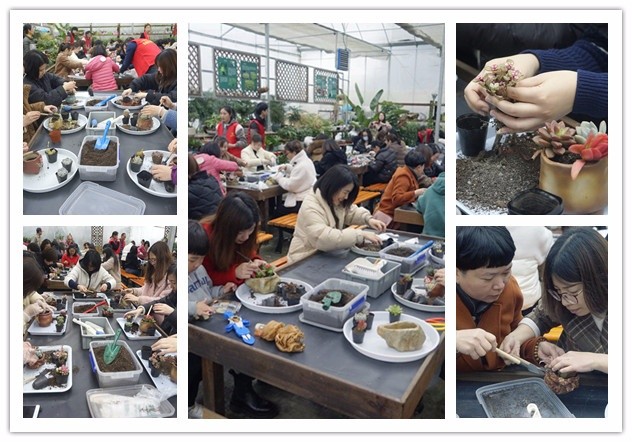 活動(dòng)在多肉DIY中拉開(kāi)序幕。多肉是植物界的小清新,天然呆萌,自帶治愈效果,而且還可以凈化空氣,作為裝飾點(diǎn)綴之用。在栽培老師的帶領(lǐng)下,姐妹們有序圍坐在一起認(rèn)真地將桌上的一盆盆小植株移入可愛(ài)的小花盆,并無(wú)限發(fā)揮自己的想象,怎么漂亮怎么搭。有的還不時(shí)詢問(wèn)身邊的同事和老師,植株的名稱和搭配方式??粗约河H手打造的精致美景,姐妹們不約而同拿出手機(jī)拍了下來(lái),有的還第一時(shí)間分享給了朋友。