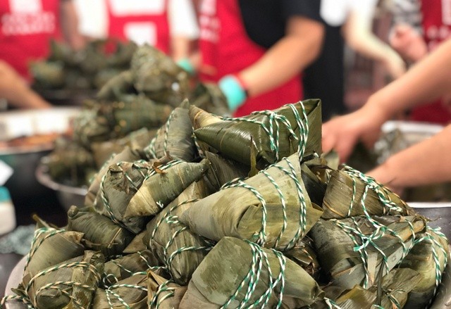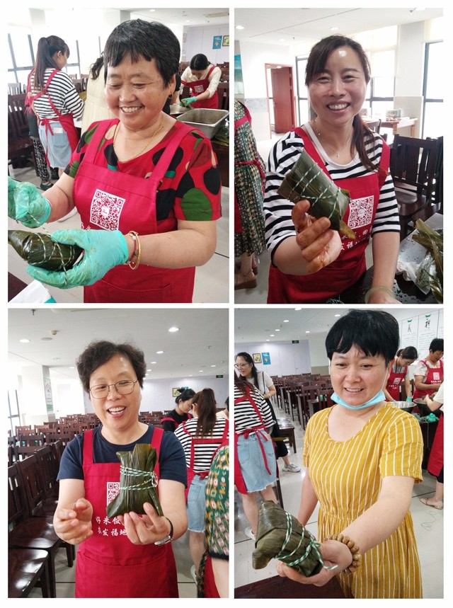 當然中間也有不少前來學習的員工,瞧,集團黨委周書記正親自授課呢!大家在各位老師傅的帶領(lǐng)下,由生到熟、由笨到巧,這粽子也是越包越好看了。