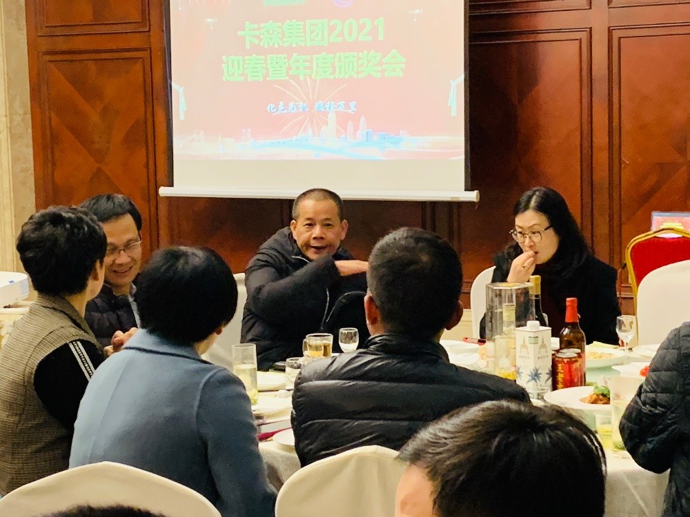 2月5日,卡森集團(tuán)2021迎春暨年度頒獎會在王庭世家舉行,因疫情原因及防控要求,僅集團(tuán)部門經(jīng)理以上及子公司老總等40多人參加晚會,會議在簡樸而熱烈的氣氛中進(jìn)行。