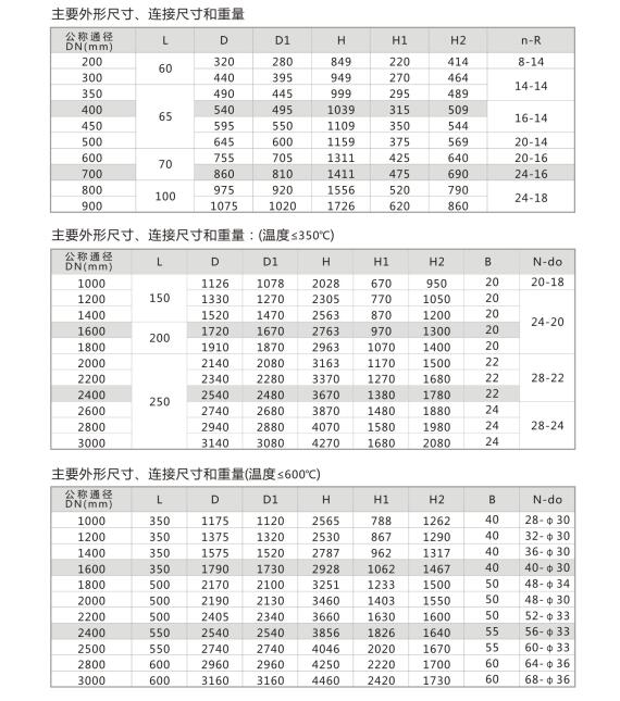 四、主要外形尺寸、連接尺寸和重量